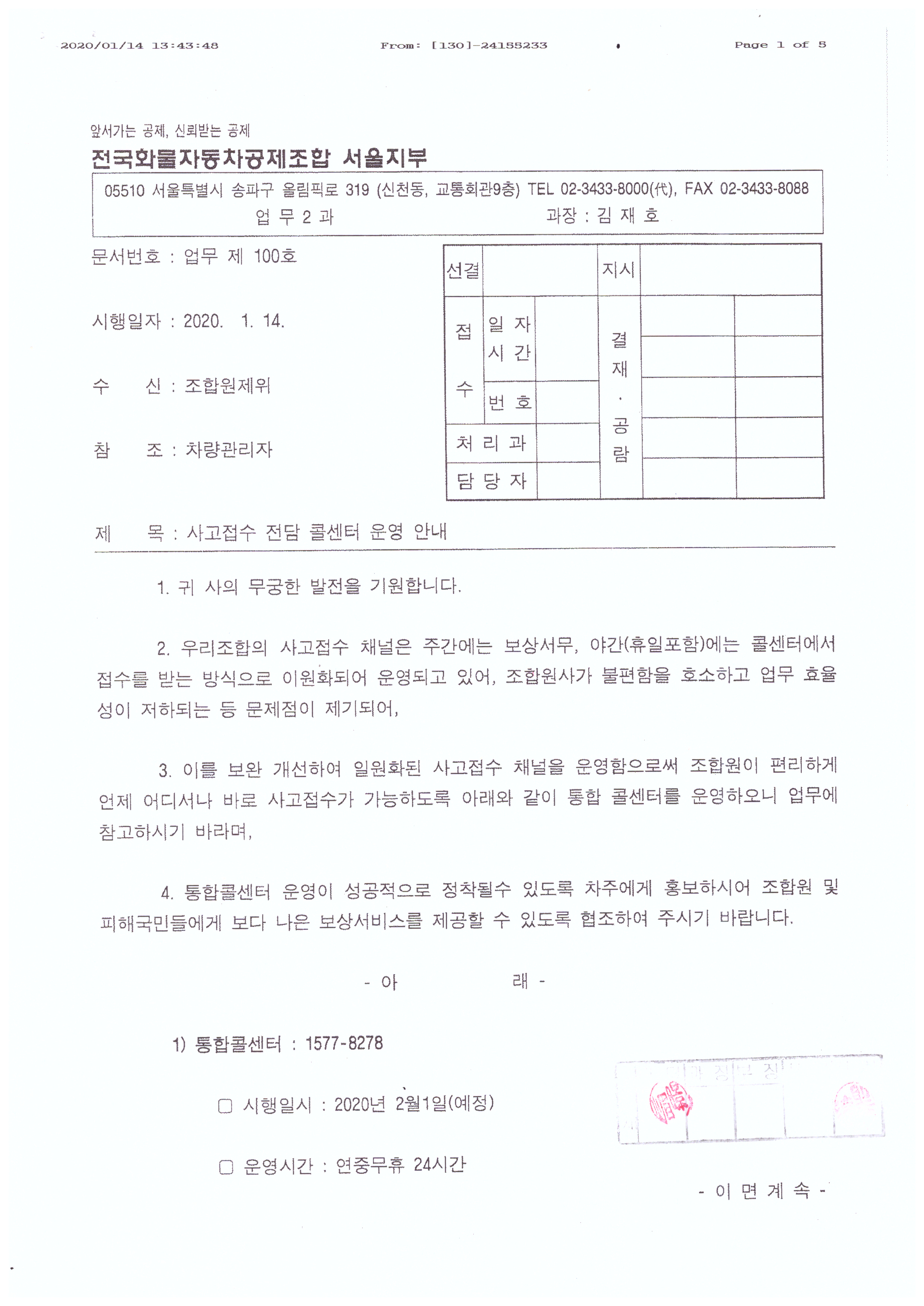 »ç°íÁ¢¼ö Àü´ã Äݼ¾ÅÍ ¿î¿µ ¾È³»-1
